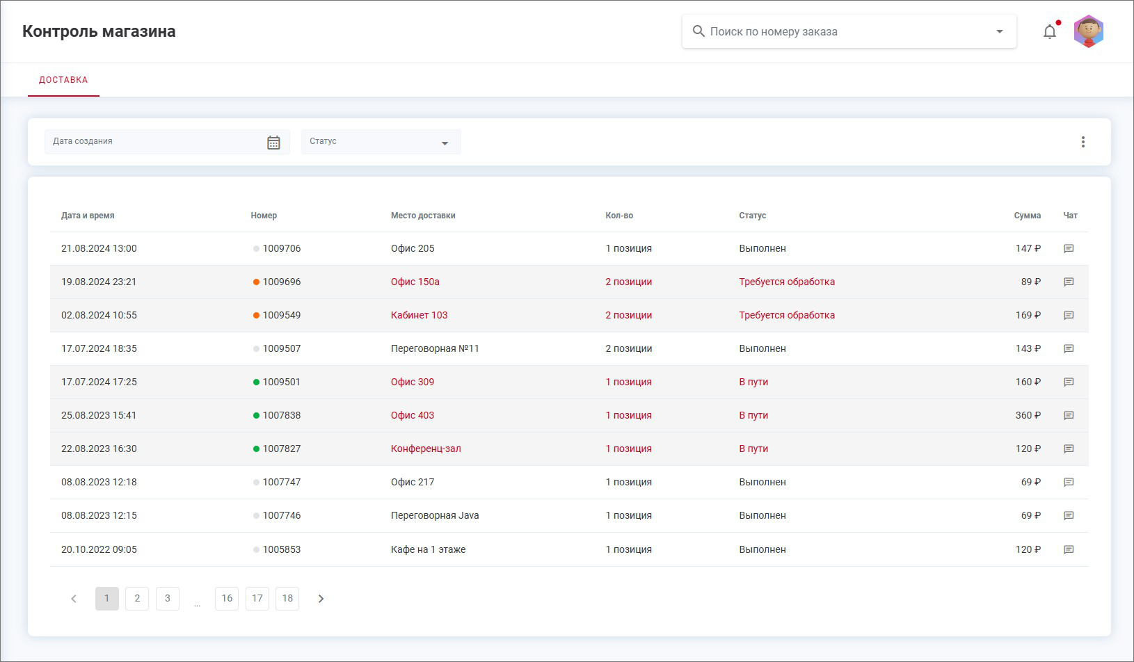 Показать исходный текстИстория страницыСсылки сюдаНаверх Поделиться через Поделиться через... Twitter LinkedIn Facebook Telegram WhatsApp RedditОтправить по эл.почтеПечать × Содержание Контроль магазина Вкладка «Движение по складу» Вкладка «Управление меню» Вкладка «Остатки по складу» Вкладка «Доставка» Контроль магазина Раздел «Контроль магазина» предназначен для работы менеджера с товарами и меню для заказов типа «Продажа номенклатуры», а также для работы курьера с заказами этого типа. Примечание. Раздел «Контроль магазина» доступен только в веб-приложении для пользователей с ролями «Менеджер магазина» и «Курьер». Для пользователя с ролью «Менеджер магазина» доступны вкладки: «Движение по складу», «Управление меню», «Остатки по складу». Для пользователя с ролью «Курьер» доступна только вкладка «Доставка».Как перейти в раздел «Контроль магазина» Для перехода в раздел «Контроль магазина»: Войдите в веб-приложение Olvery. В боковом меню в переключателе интерфейсов выберите «Управление экосистемой». В результате будет осуществлён переход в интерфейс администрирования. Перейдите в раздел «Контроль магазина». Вкладка «Движение по складу» На вкладке «Движение по складу» присутствуют возможности: просмотр операций, произведенных с остатками товаров; проведение операций поступления и списания товаров; фильтрация операций, произведенных с остатками товаров; экспорт операций в файл формата .xslx. Вкладка «Управление меню» На вкладке «Управление меню» присутствуют возможности: просмотр списка меню, созданных для работы услуг с типом «Продажа номенклатуры», с возможностью фильтрации; создание нового меню, его редактирование и удаление; добавление товаров в меню. Вкладка «Остатки по складу» На вкладке «Остатки по складу» присутствуют возможности: просмотр товаров услуги типа «Продажа номенклатуры» на определенном складе; фильтрация товаров по категории или названию. Вкладка «Доставка» На вкладке «Доставка» присутствуют возможности: просмотр списка заказов с доставкой услуги типа «Продажа номенклатуры» с возможностью фильтрации; поиска заказа по номеру; доставки заказа пользователю курьером. Примечание. Для услуги типа «Продажа номенклатуры» есть возможность интеграции со сторонними системами учета остатков. Страницы раздела: Движение по складу | Управление меню | Остатки по складу | Доставка help/z_admin/b_food.txt Последнее изменение: 2025/01/29 15:17 — Марина Спиридонова